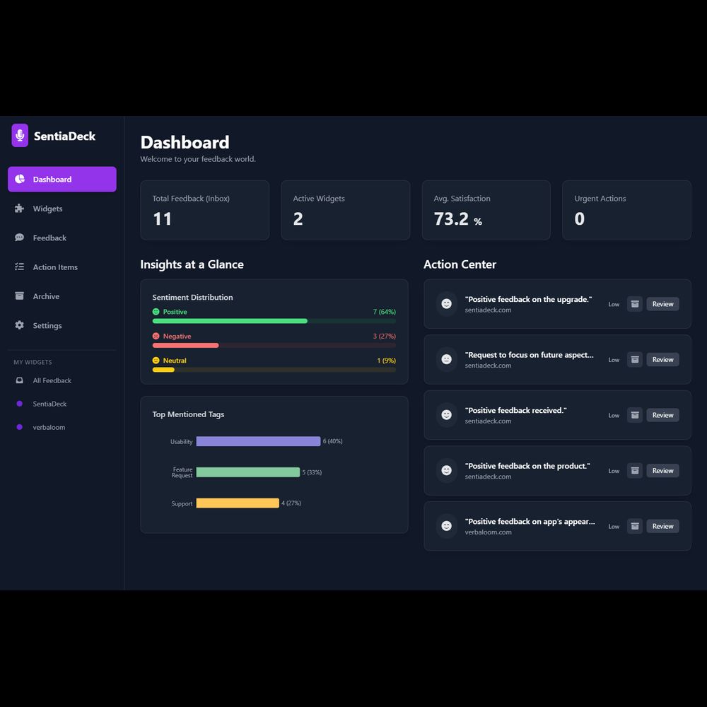 Capture voice feedback and analyze with AI — private, offline, and instant. Try all features free with 1 widget. No credit card required.